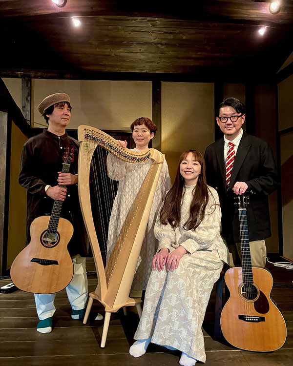 歌、ハープ、2本のギターの響きに包まれるひととき。ぜひともお誘い合わせのうえお越しくださいませ。